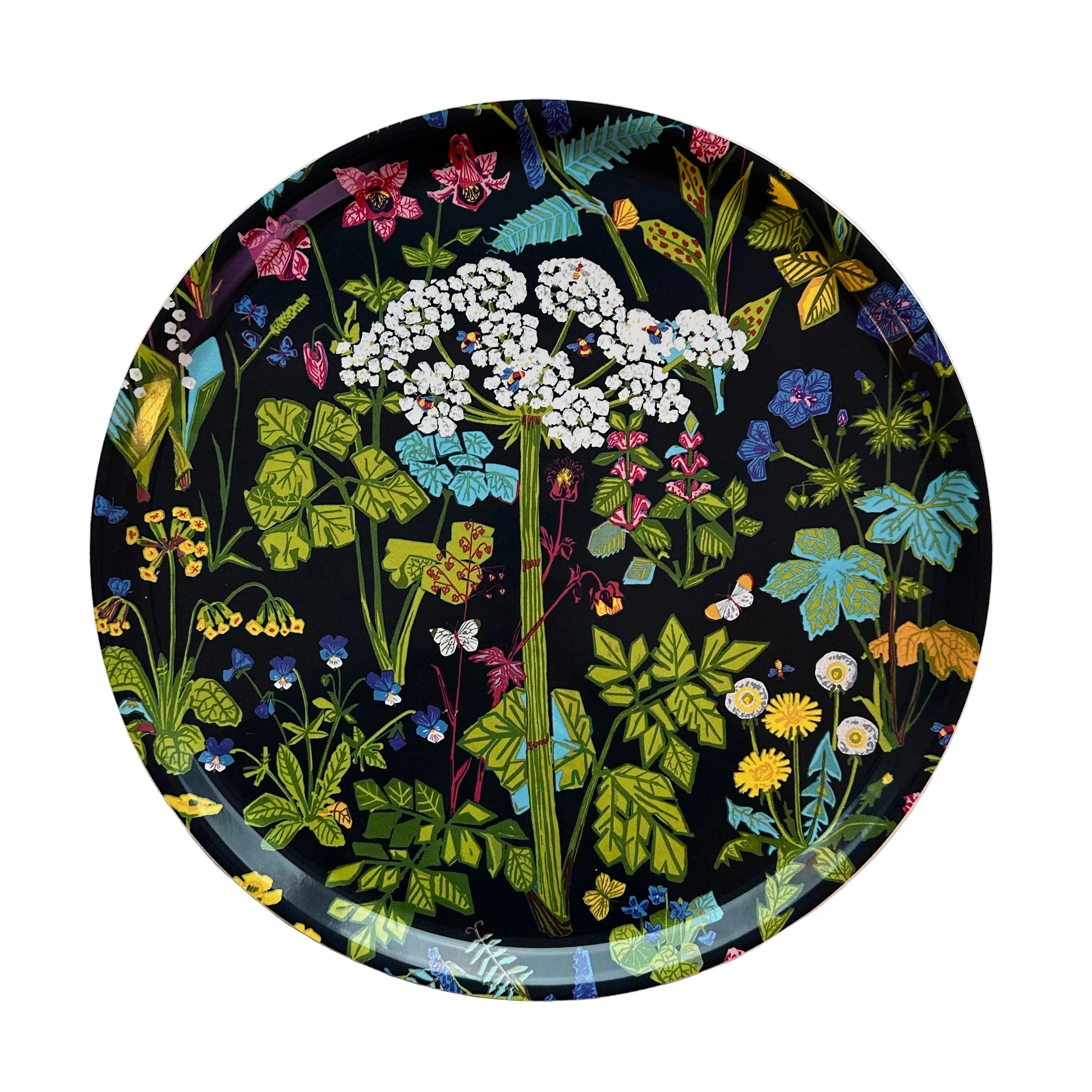 Digitaltryckt bricka 46 cm i mönster Aurora 1956 av Lisbet Jobs. Framtaget exklusivt för Vandalorum (tillverkad i Småland i björkfanér).