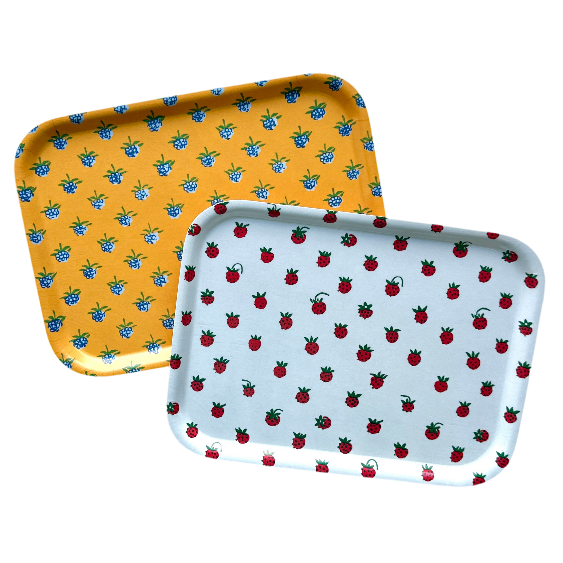 Bricka 27*20 cm i mönster Blåhallon (1947) av Gocken Jobs. Framtaget exklusivt för Vandalorum (tillverkad i Småland i björkfanér).
