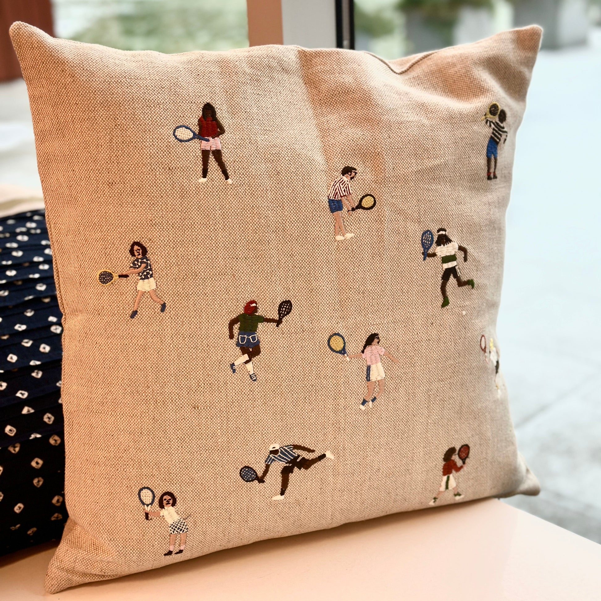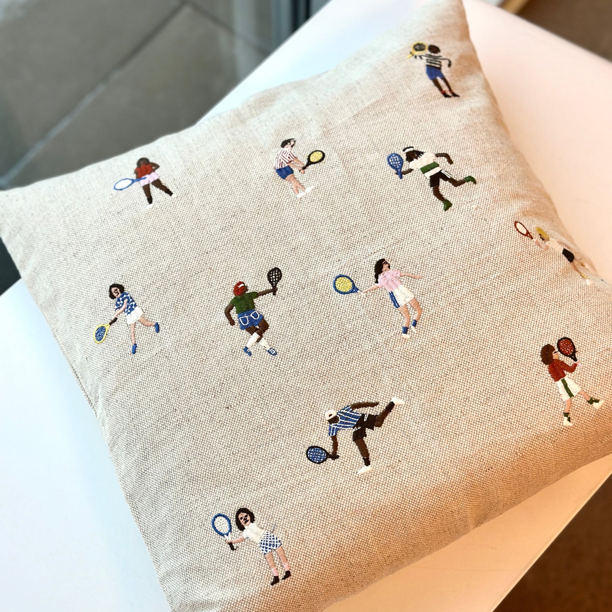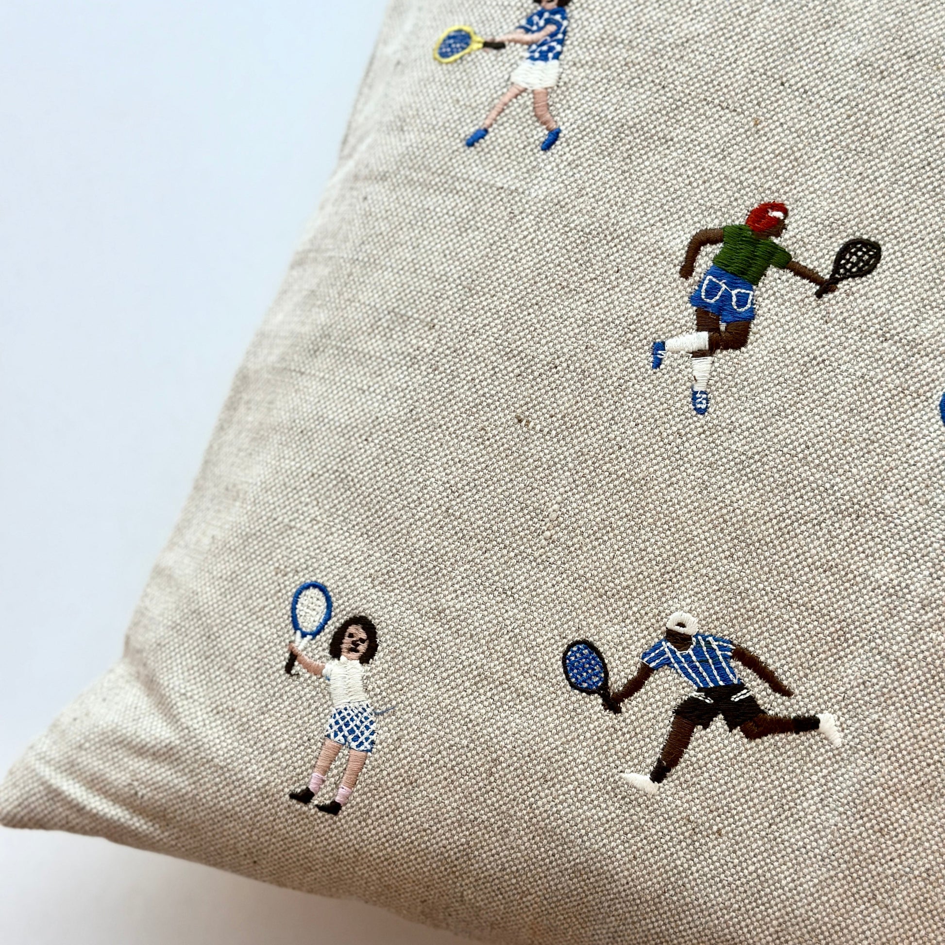 Kuddfodral i mjuk kraftig oblekt linnekanvas med broderat motiv.