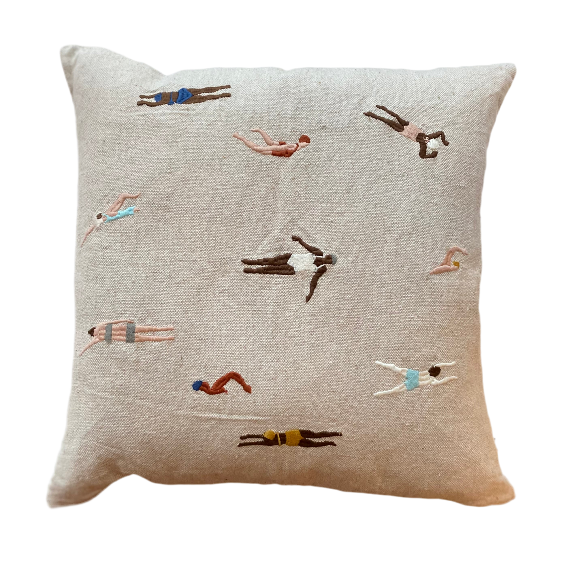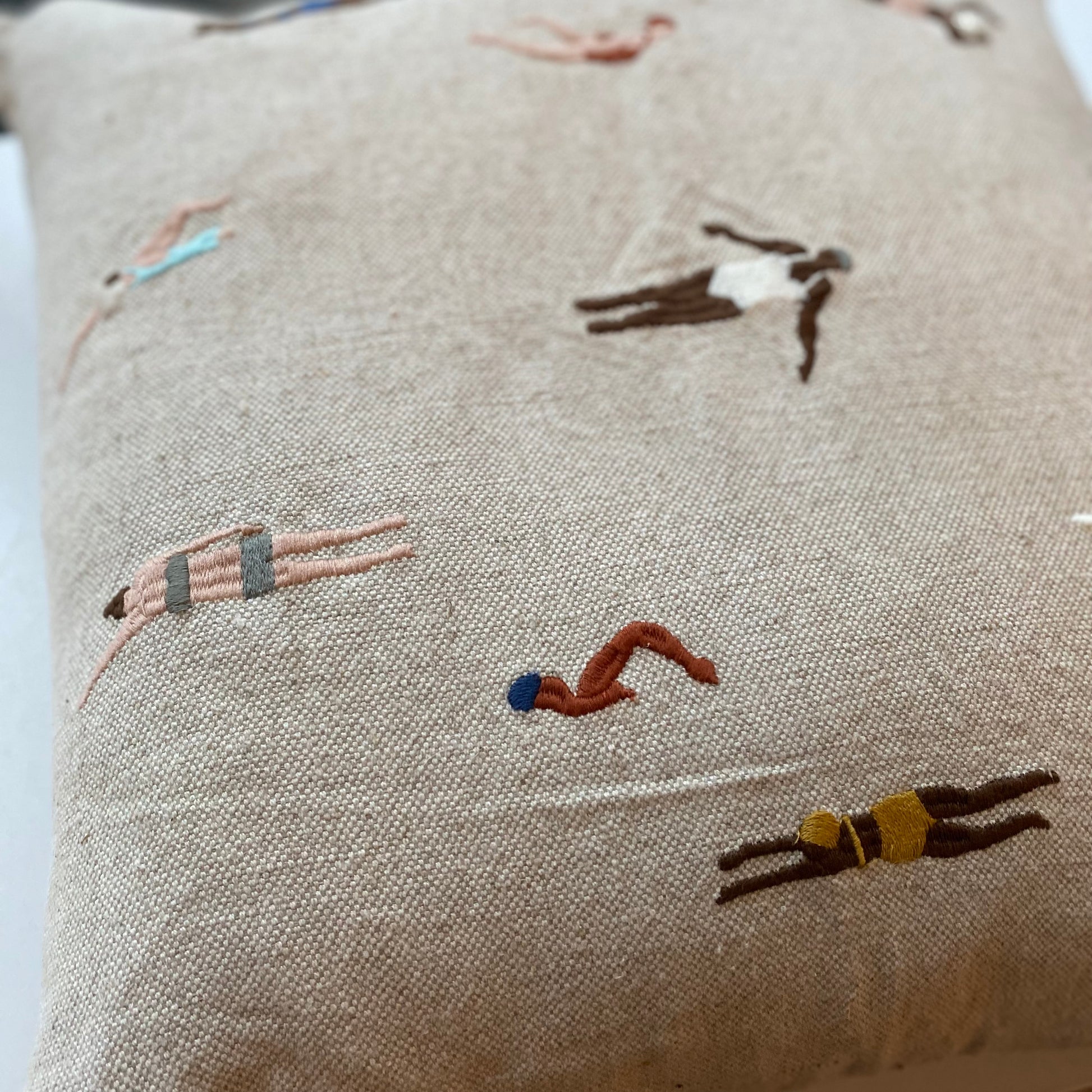 Kuddfodral i mjuk kraftig oblekt linnekanvas med broderat motiv. Kudden med små broderade simmare designat av Elisabeth Dunker blir garanterat en uttrycksfull inredningsdetalj i soffan eller på sängen.