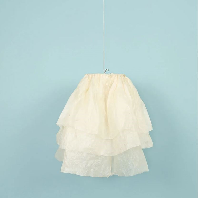 Den kjolliknande lampskärmen tillverkas av ett tunt handgjort papper. Lampskärmen hänger direkt i sladden. Använd LED-lampa.