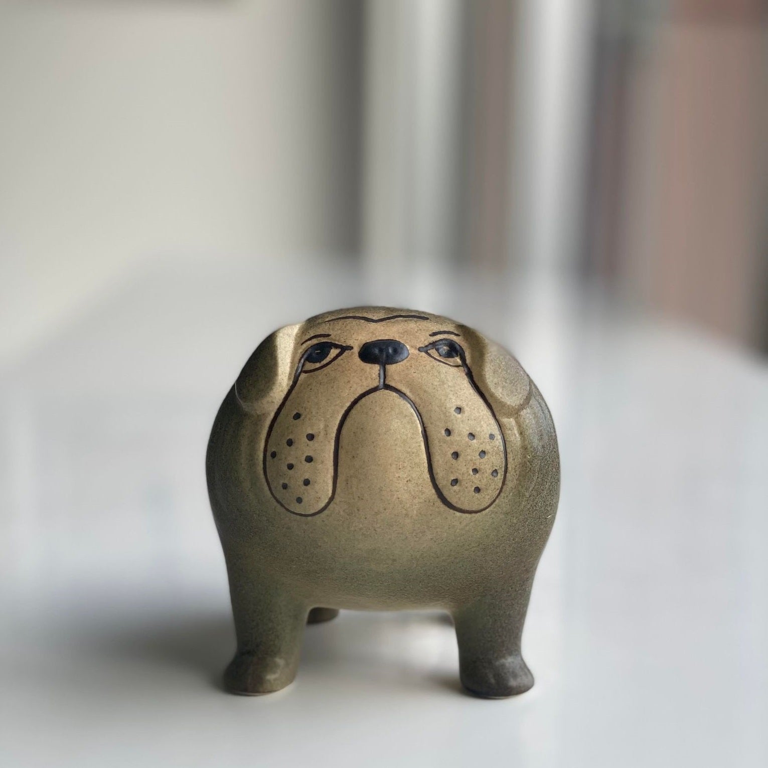 Denna söta bulldogg ingår i Lisa Larsons serie Kennel. Tillverkad i chamotte och målad för hand vilket gör att varje bulldogg har ett unikt utseende. Hunden på bilden är ett exempel.