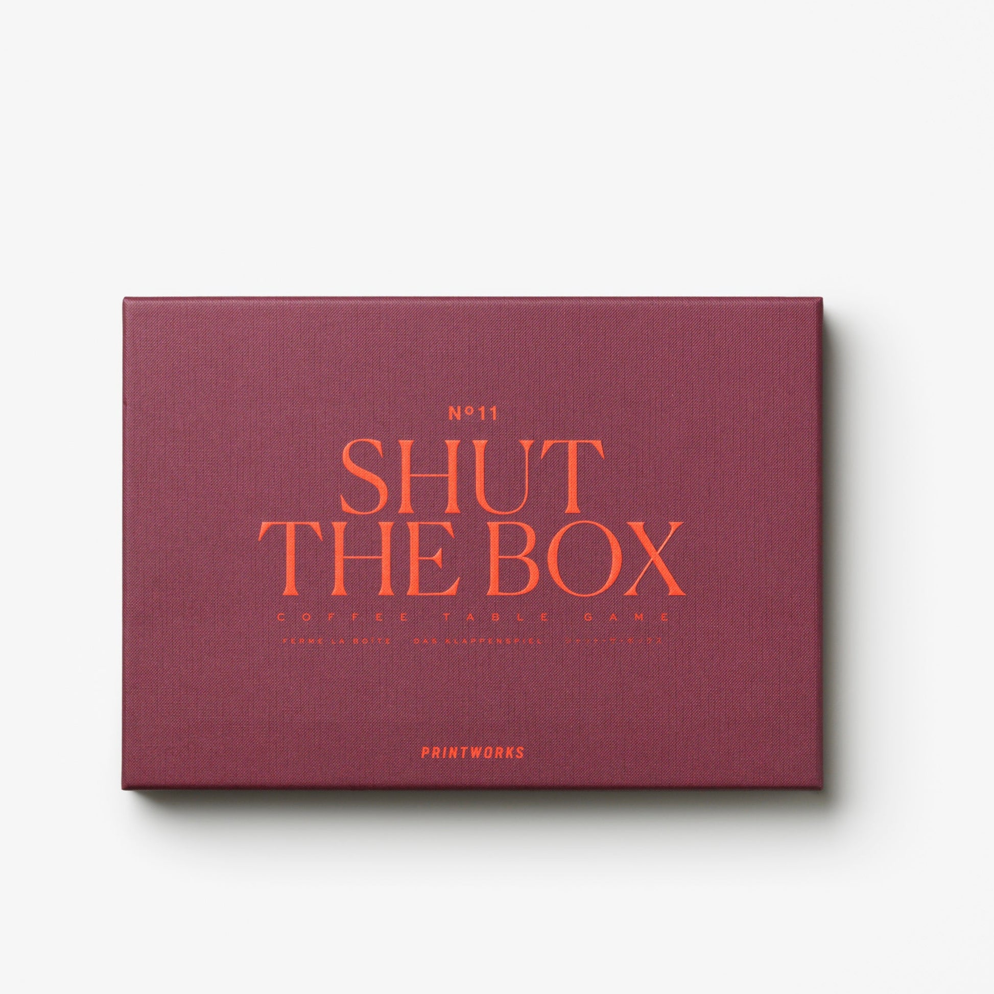 Shut the Box är ett tidlöst spel som förenar strategi med nöje. Setet består av en träbräda med numrerade brickor och två tärningar. Med lättförståeliga instruktioner på engelska, franska och tyska passar spelet spelare från 5 år och uppåt.